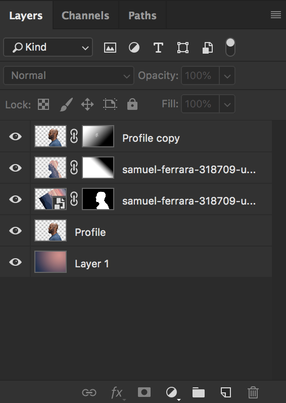 - Copy Profile Layer > Add a new Mask and drag a Linear Gradient across it >