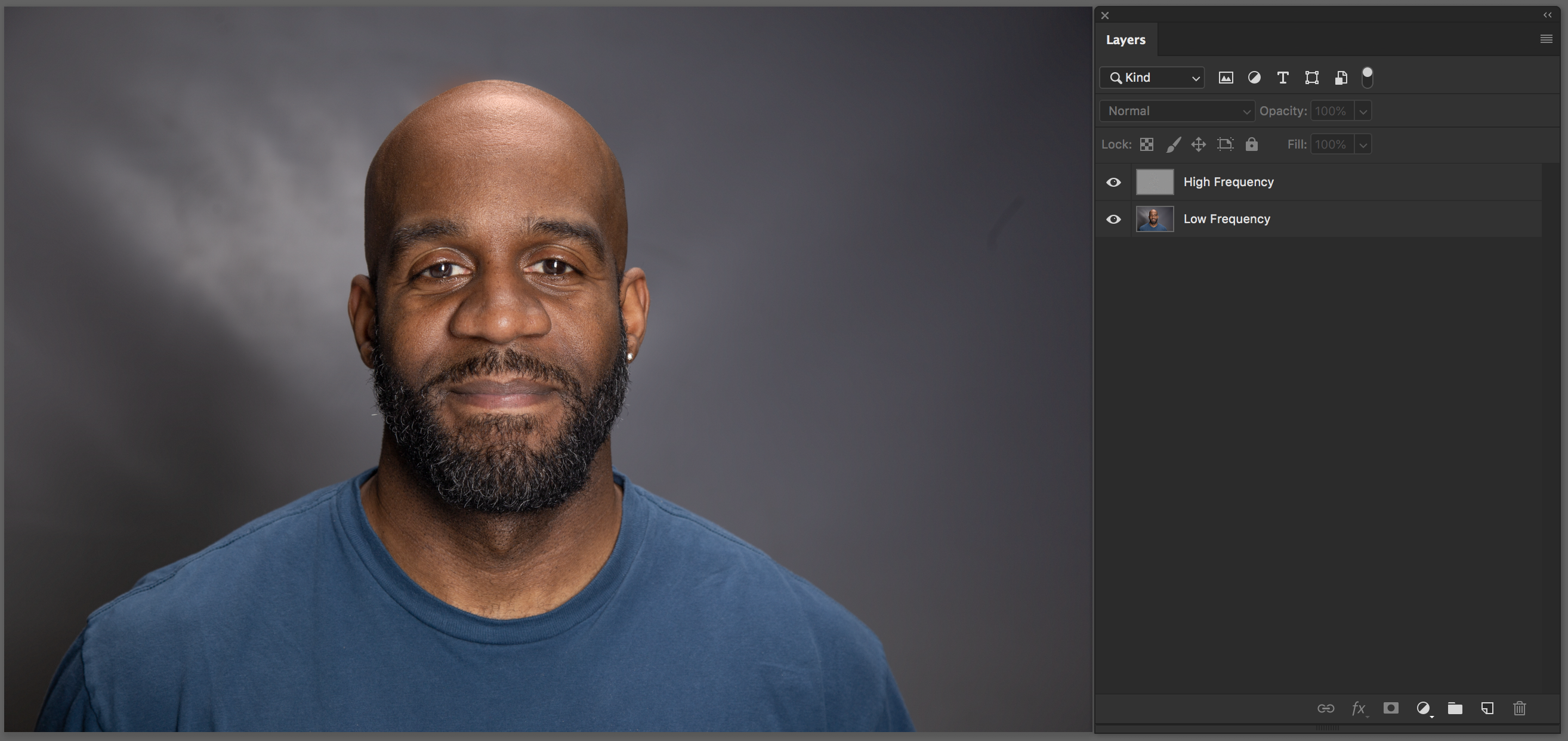 Click: OK - Set the top layer "High Frequency" blend mode: Linear Light